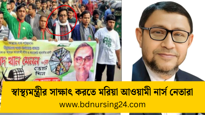 ঠিক এই সময়ে আওয়ামীলীগের নার্স নেতারা স্বাস্থ্যমন্ত্রীর সাক্ষাৎ পেতে বিভিন্ন ভাবে চেষ্টা করছেন। এদের নেতৃত্ব দিচ্ছেন আওয়ামী লীগের নার্স নেতা ও ঢাকা মেডিকেল কলেজ হাসপাতালের সিনিয়র স্টাফ নার্স মোহাম্মদ আসাদুজ্জামান জুয়েল। তার নেতৃত্বে একটি টিম স্বাস্থ্য মন্ত্রীর সাথে সাক্ষাৎ পেতে একটি চিঠি পাঠিয়েছেন মন্ত্রণালয়ে। সচিবালয়ের কর্মরত আওয়ামী দোসর নার্সদের সহযোগিতায় এই চিঠি মন্ত্রীর দফতরে পাঠানো হয়েছে। চিকিৎসা সেবা ব্যাহত করতে ও নার্সিং সেবায় বিশৃঙ্খলা সৃষ্টিকারী এই সংঘবদ্ধ আওয়ামী চক্রটি অন্তর্বর্তীকালীন সরকারের সময় নানা দূর্ণীতির সাথে জড়িত। মোহাম্মদ আসাদুজ্জামান জুয়েলের নেতৃত্বে নির্বাচন বানচাল করতে ও বিএনপিকে বিতর্কিত করতে তারা পরিকল্পিতভাবে কাজ করেছিলো। এরই অংশ হিসেবে তপসিল ঘোষণার আগে দেশব্যাপী নার্স আন্দোলন ও ঢাকায় নার্স মহাসমাবেশ নামে নির্বাচন বানচালের ষড়যন্ত্র করে। তখন বিএনপির নার্সিং বিষয়ক সহ সম্পাদক জাহানারা সিদ্দিকী নির্বাচনের আগে নার্স আন্দোলনের বিরুদ্ধে সংবাদ সম্মেলন করে।